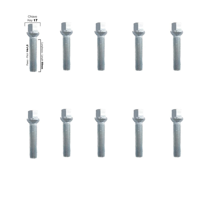 10 bulloni ch.17 14x1.5 l.60mm sferici