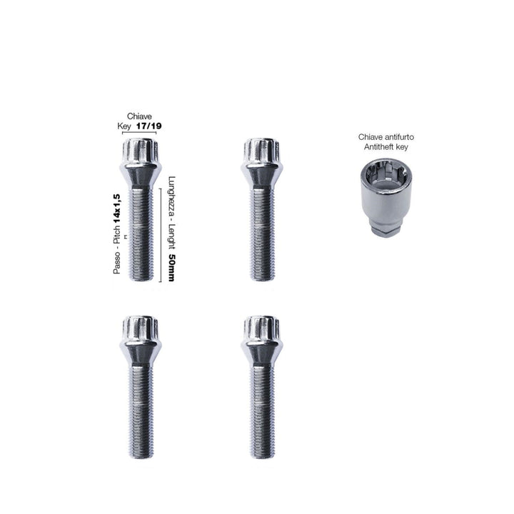 4 bulloni antifurto ch.17/19 14X1.5 l.50mm