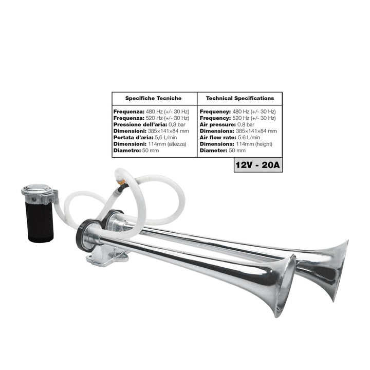 suono da 118db dotata di compressore ad alte prestazioni e trombe di alluminio
